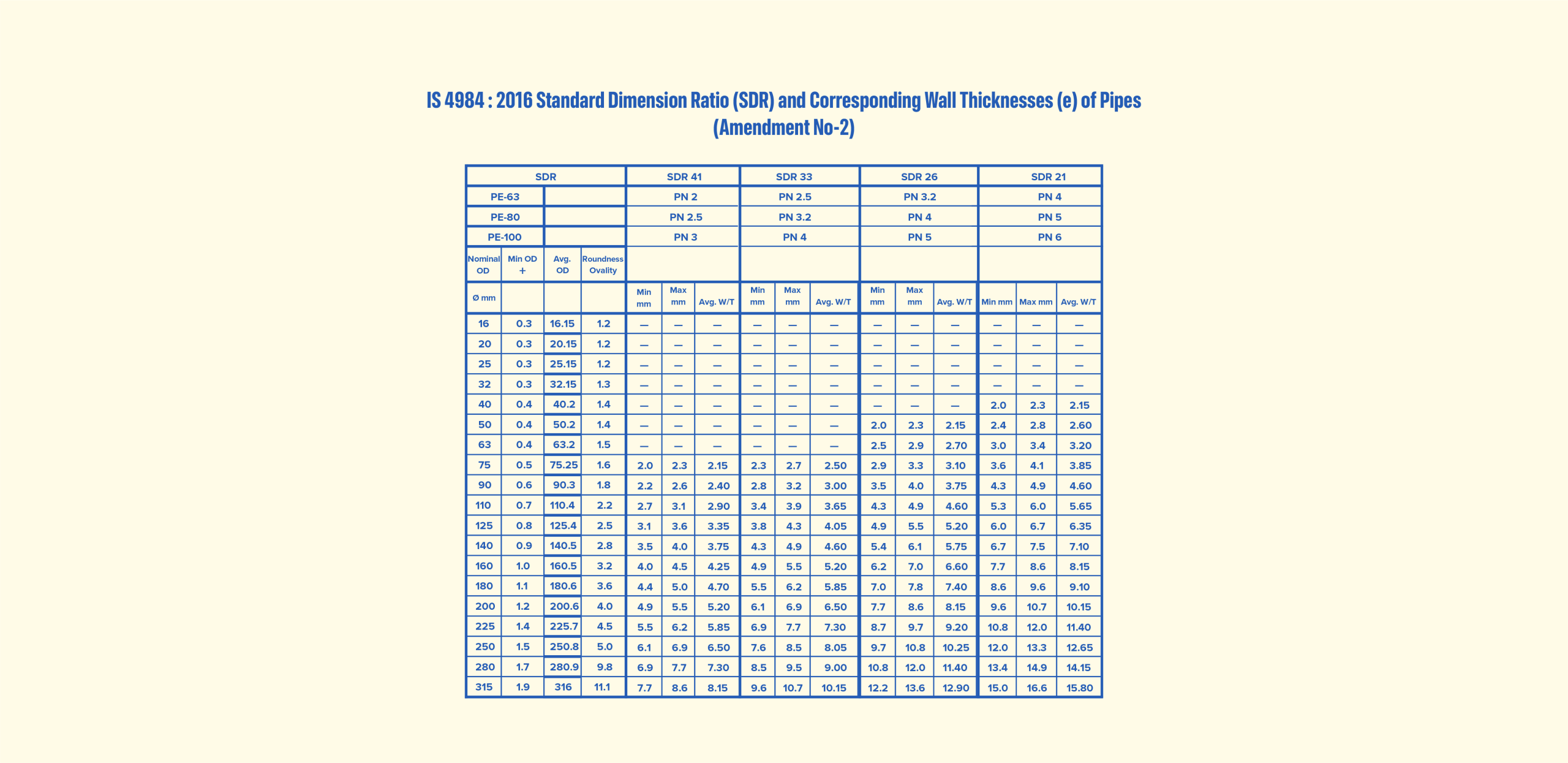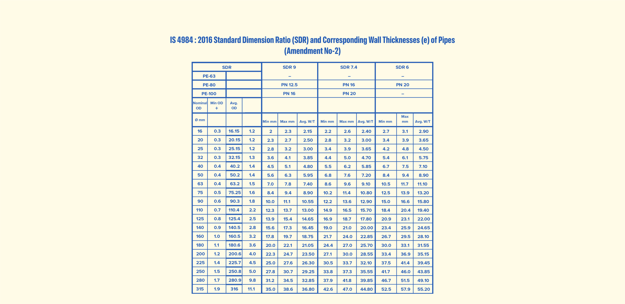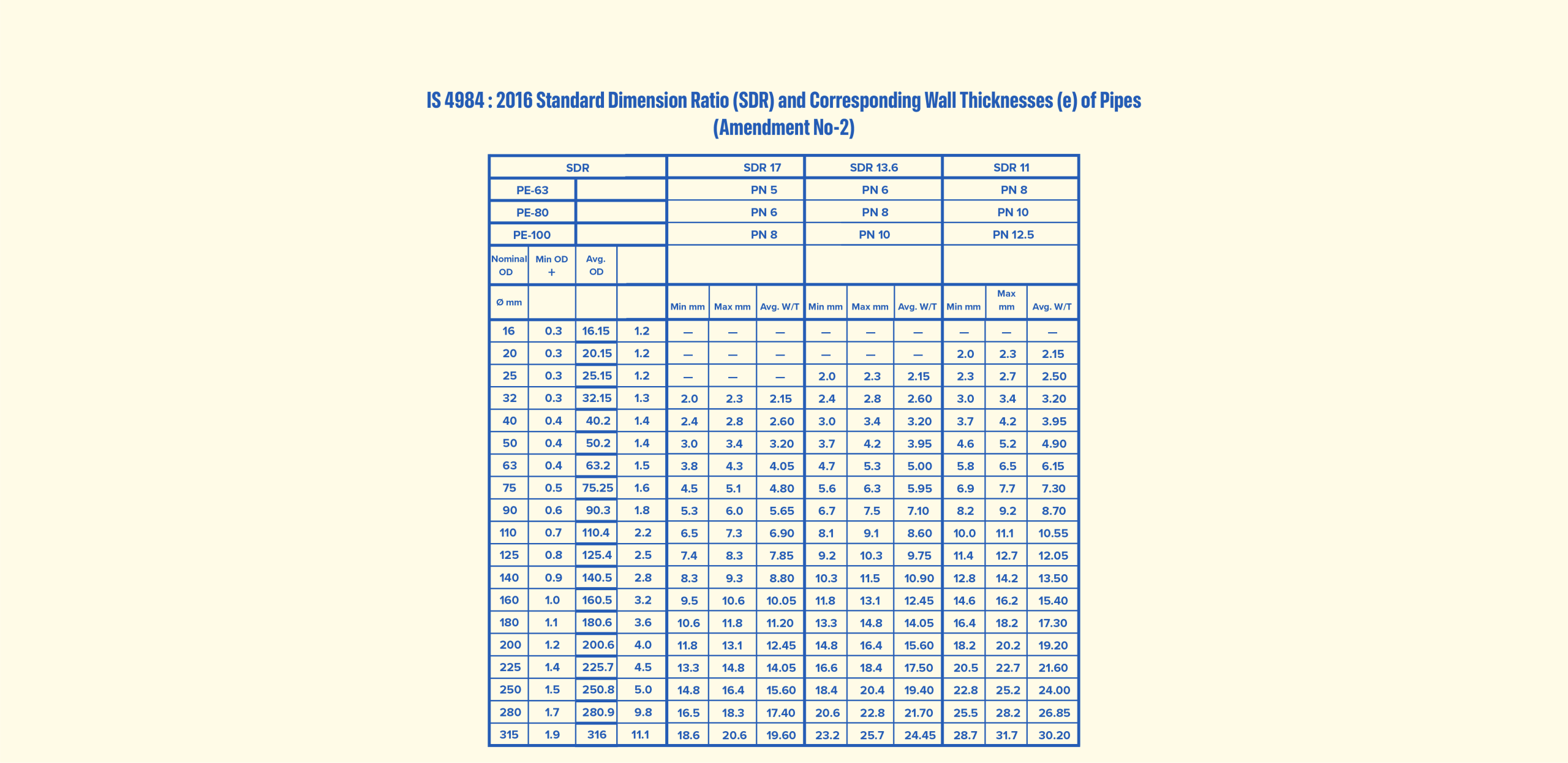 Currently, we manufacture DWC (HDPE) pipes that are used for electrical applications, sewerage, drainage, harvesting etc in sizes mentioned in below table: